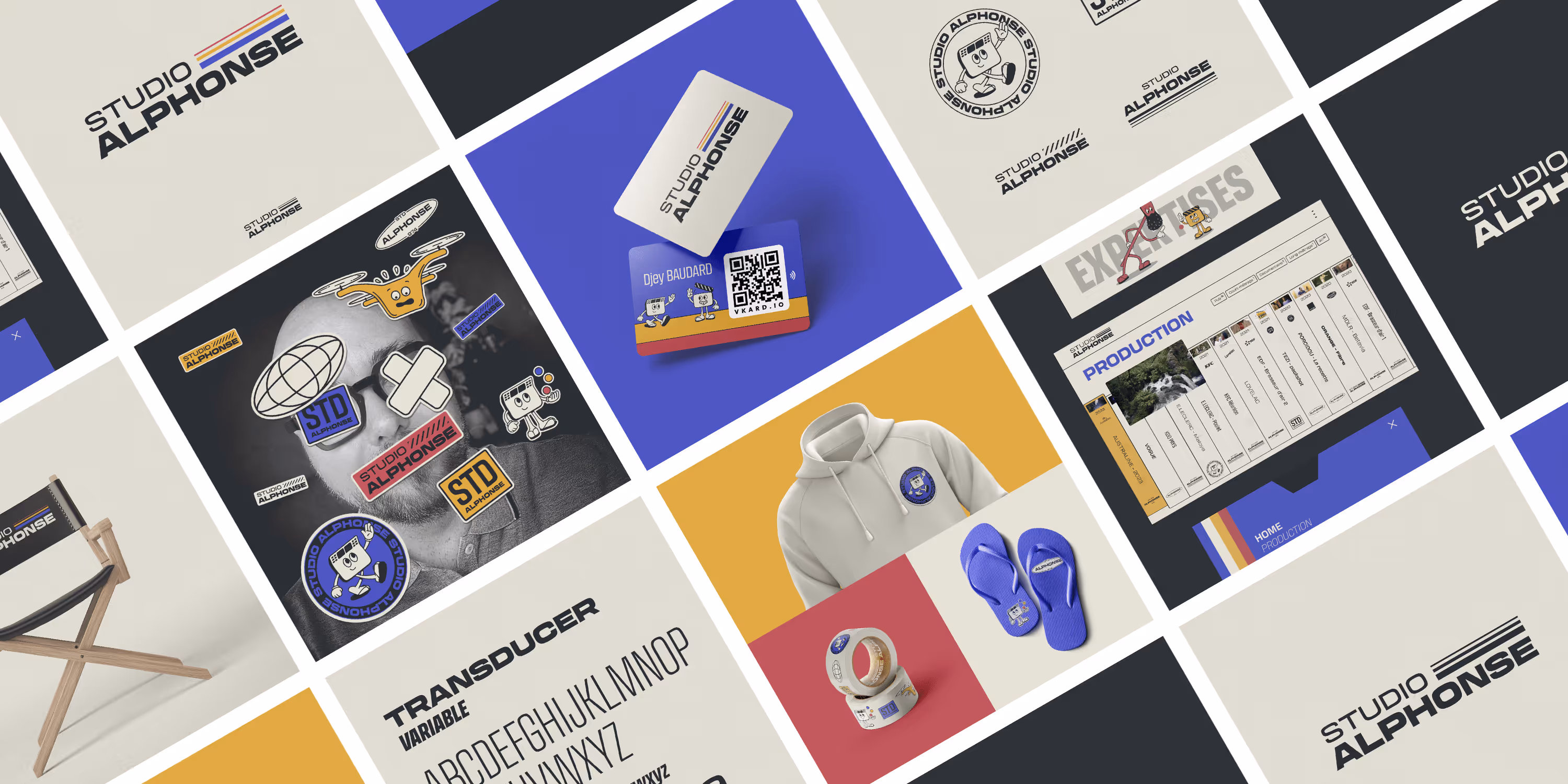 Jérôme Baudard est le créatif derrière Studio Alphonse. Sa personnalité décalée et attachante est le fil rouge de l’identité. Entre esprit vintage et humour, les couleurs, typographies, personnages cartoon, VHS et micro-interactions construisent un univers singulier.