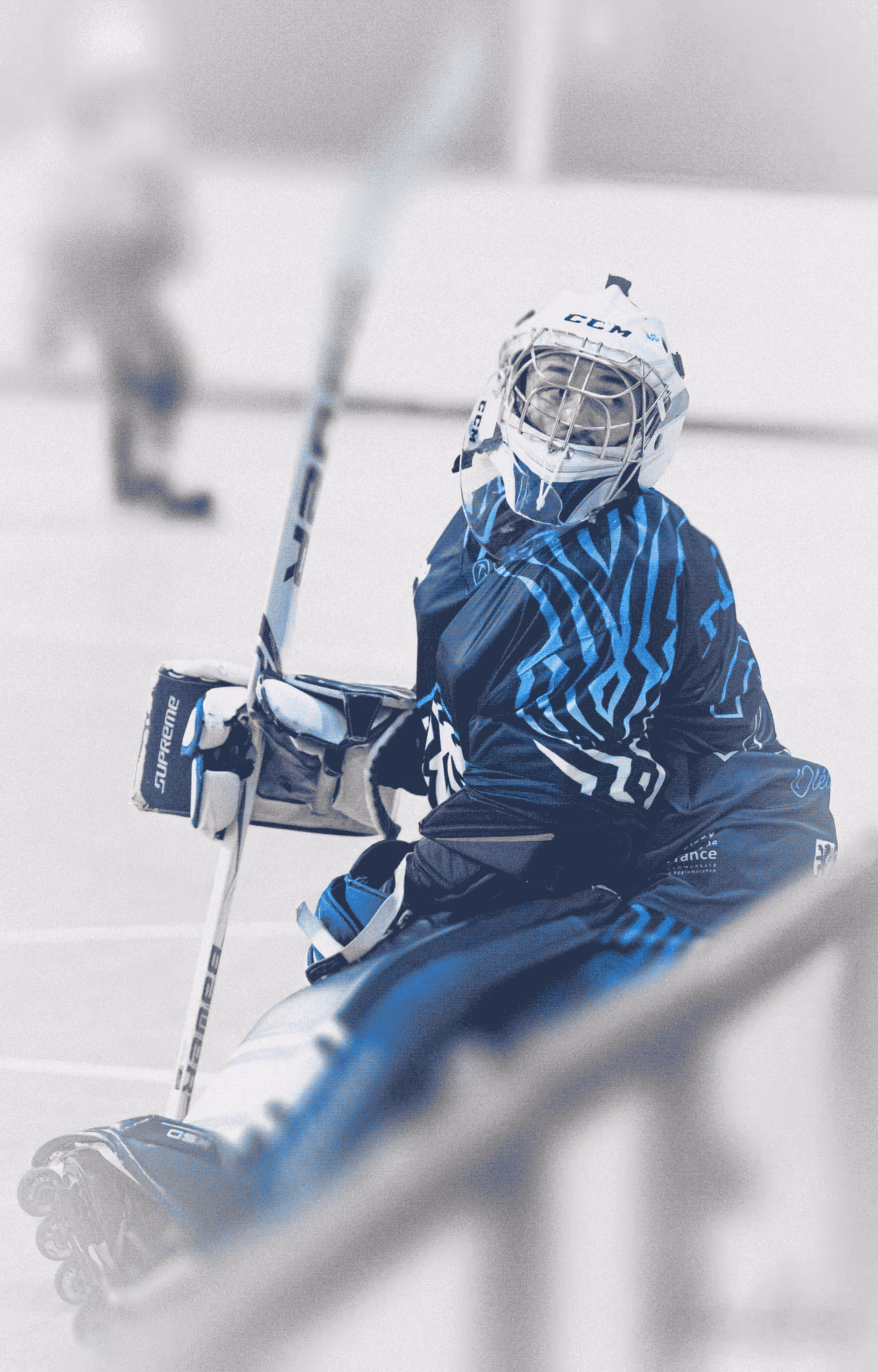 Le masque de gardien est un support graphique unique, où identité et design se croisent. Un mockup a été créé pour des visuels réseaux sociaux. Séduit, l’un des gardiens a choisi de le faire réaliser et l’a porté quelques semaines plus tard.